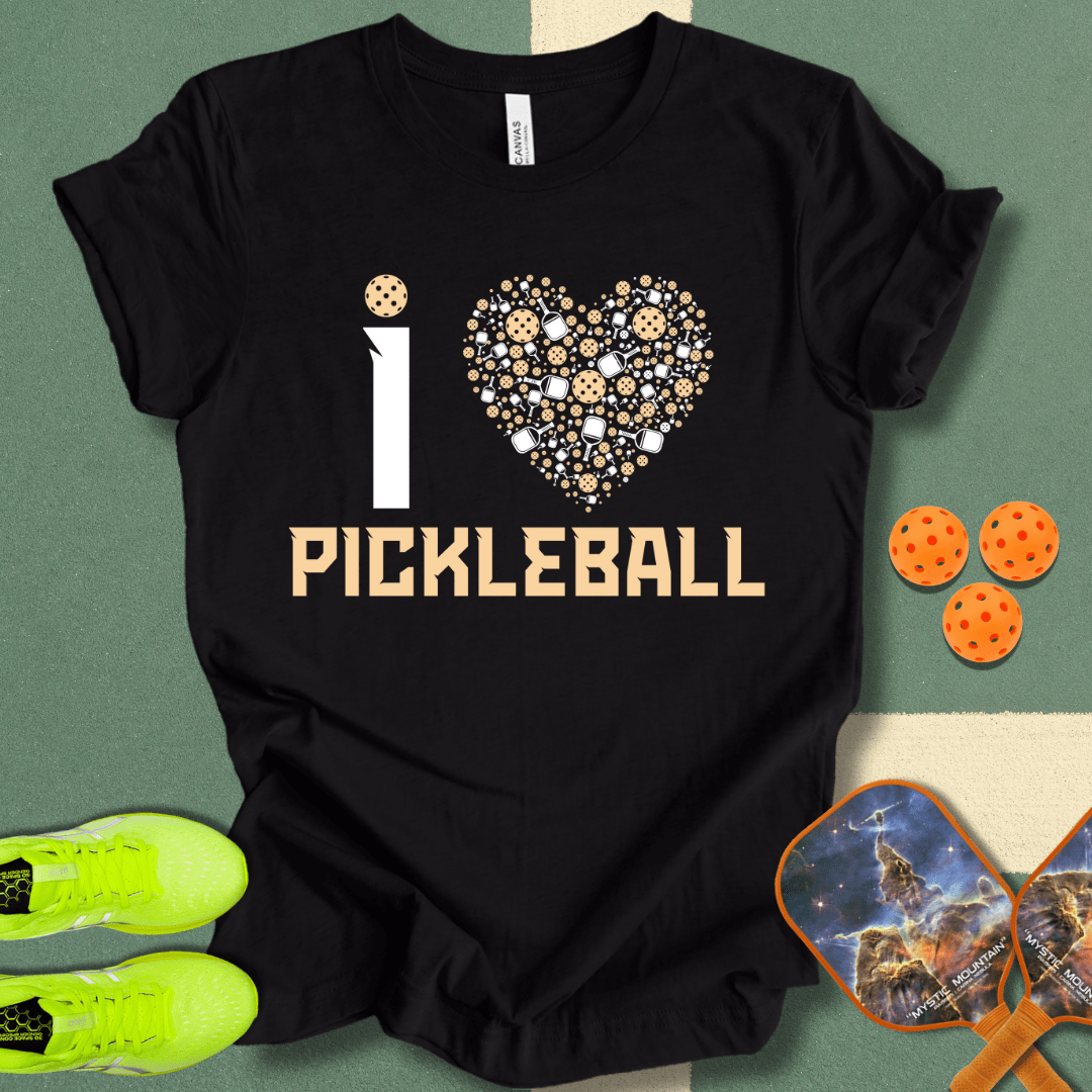 Show your pickleball pride with our “I <3 Pickleball” T-Shirt. Crafted from a soft, breathable fabric, this tee is perfect for both intense matches and casual hangouts. With its bold design, let everyone know you're all about the game—get ready to serve up style on and off the court!