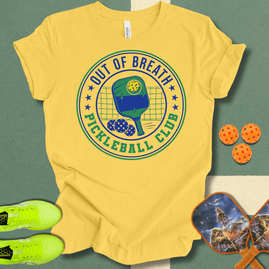 Catch your breath with the "Out of Breath" tee — designed for pickleball players who give it their all on the court. Whether you're sprinting for a shot or just finished a marathon match, this shirt offers comfort and style that keeps up with your game.