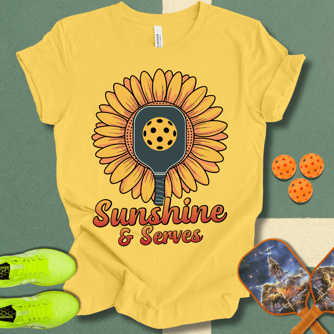 Serve up good vibes with every shot. The Sunshine Serves tee is soft, lightweight, and perfect for players who bring the warmth and fun to the court.